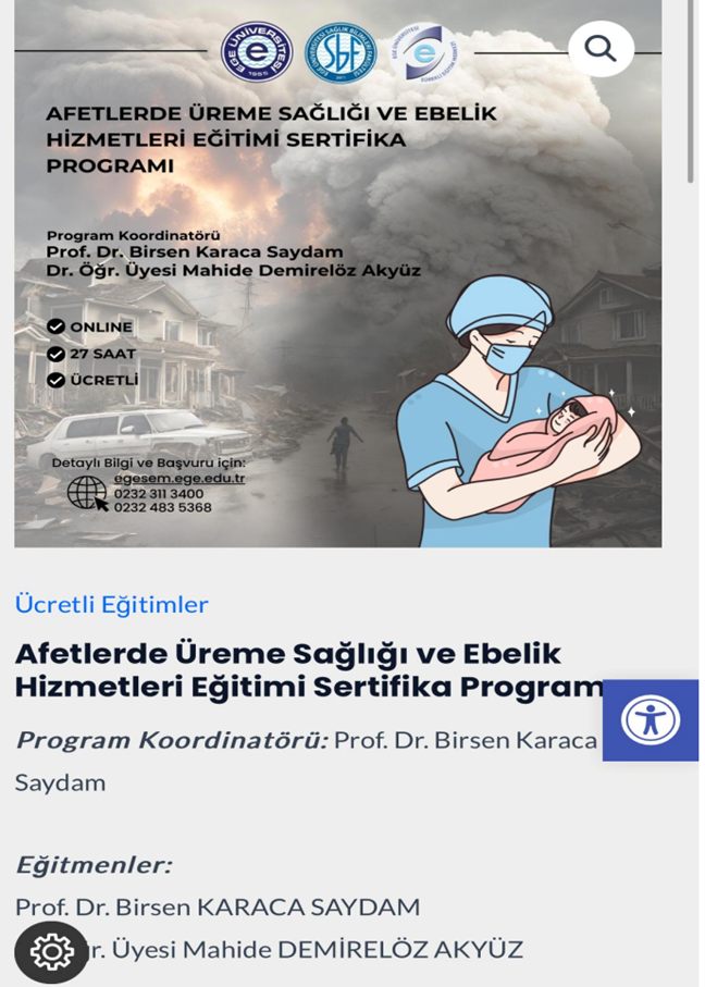 All events were publicly announced and shared with target audiences through both the university’s official website (egesem.ege.edu.tr) and the websites and social media accounts of the organizing units. Additionally, events organized to meet the vocational development needs of external institutions were officially communicated to the relevant organizations by formal correspondence.