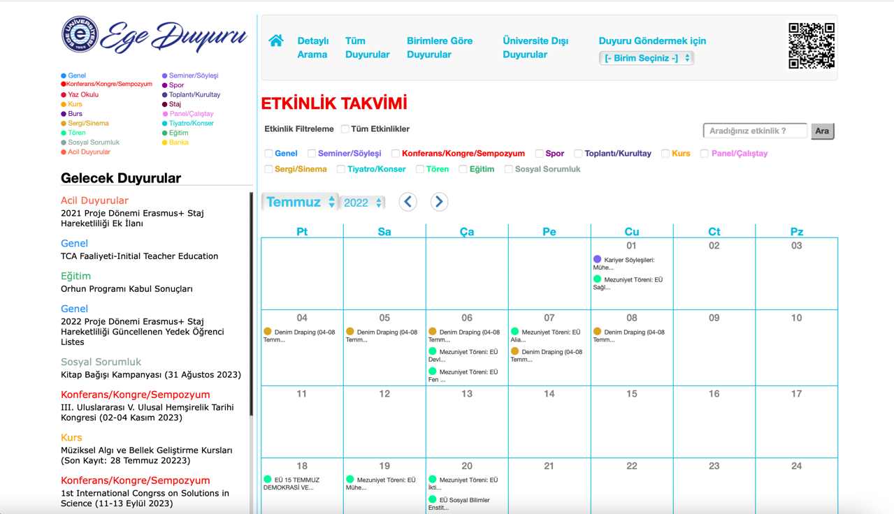 Anyone interested can easily access information on the date, time, and location of public events through Ege Duyuru. This information is also available on the main page of the university website for public access.